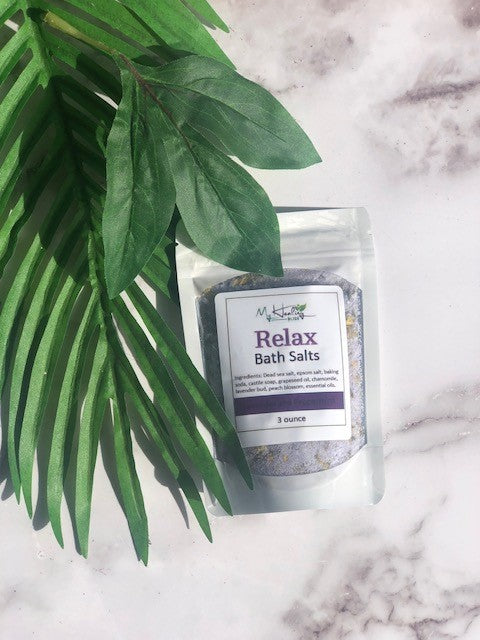 Ingredients: Dead sea salt, epsom salt, lavender, yarrow root and chamomile flower, essential oil blend that will help release muscle pain, inflammation, and nausea. Helpful Hint: Use as a bath soak, foot soak, hand soak.
